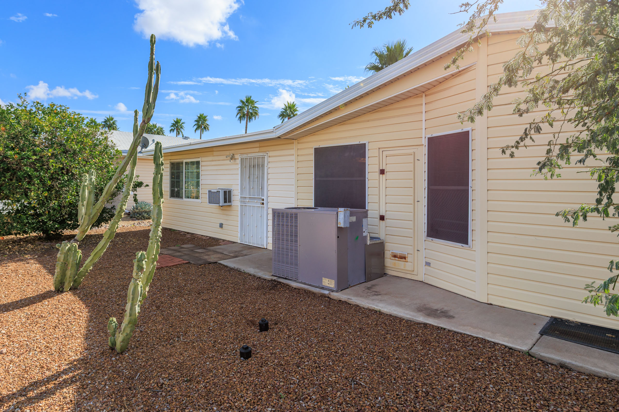 PHOTOS COMING SOON!!! This classic 2-bedroom, 2-bath home is a real find at this price! The home is spacious with beautiful natural lighting. Everyday living is easy and convenient and the open concept living, dining, and kitchen area is bright and airy. The kitchen is roomy making cooking and baking comfortable using the build-in oven and cooktop on the kitchen island. This home has a 400 sf. fully finished enclosed AZ Room. 2 large storage sheds with washer and dryer in one shed.