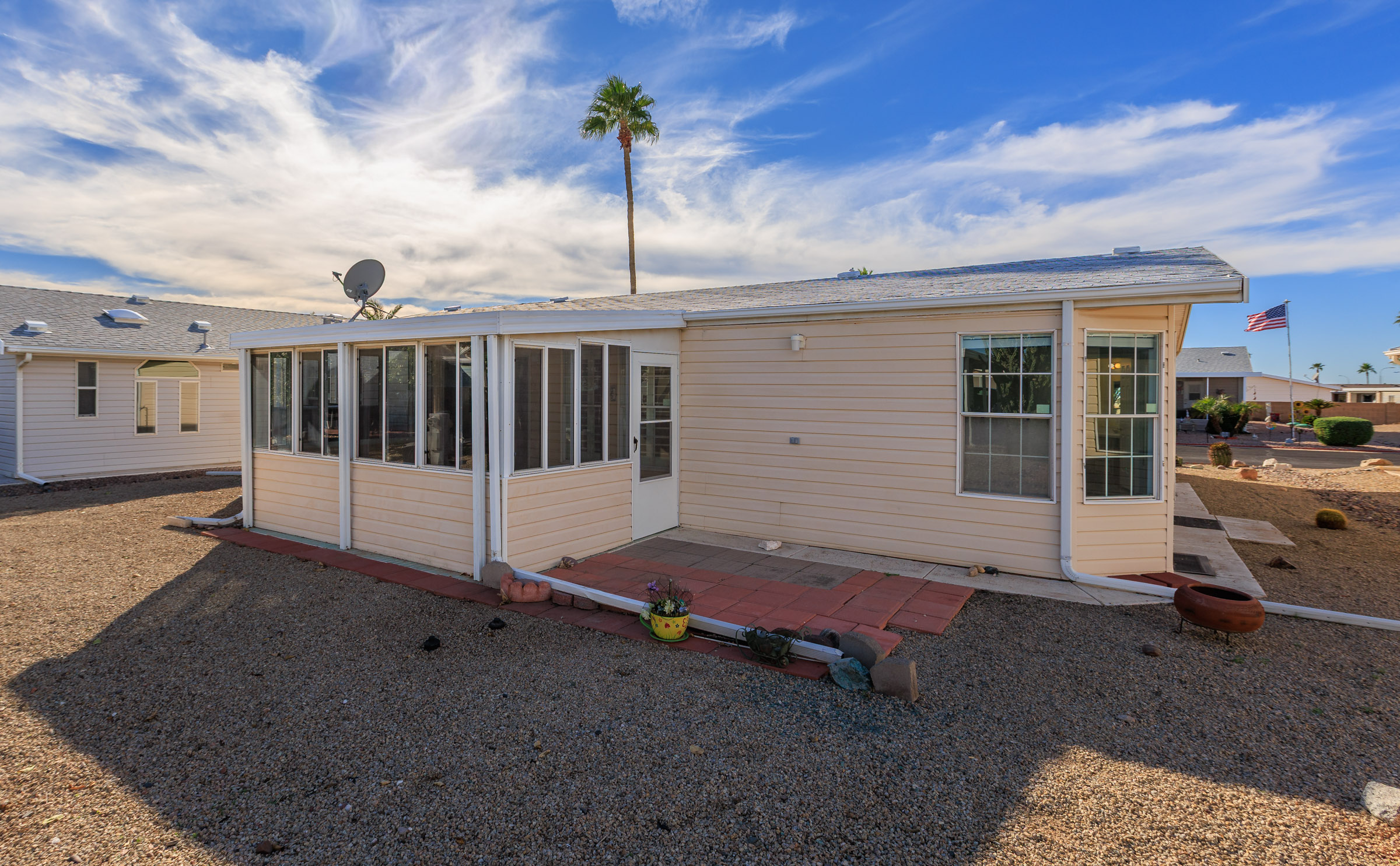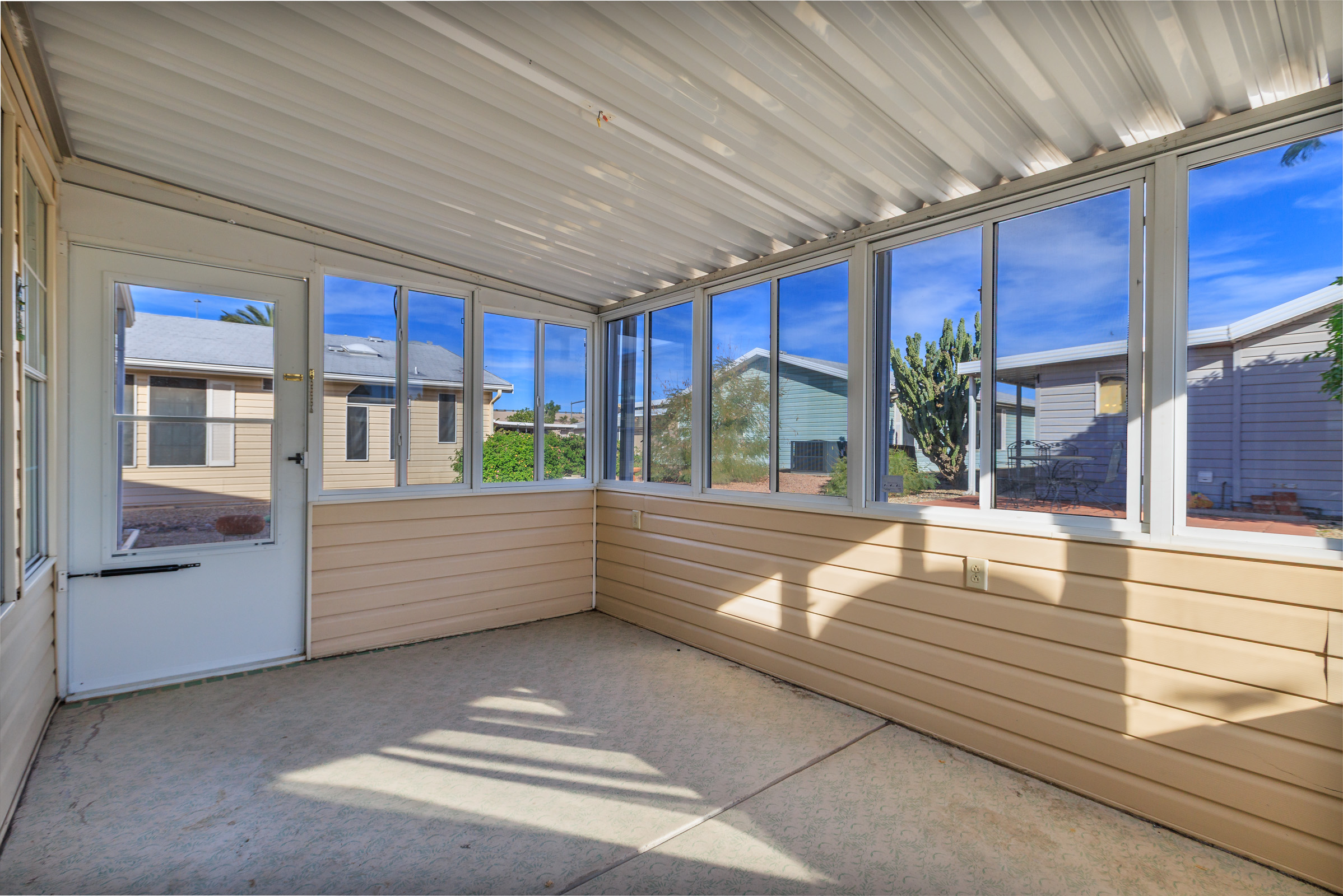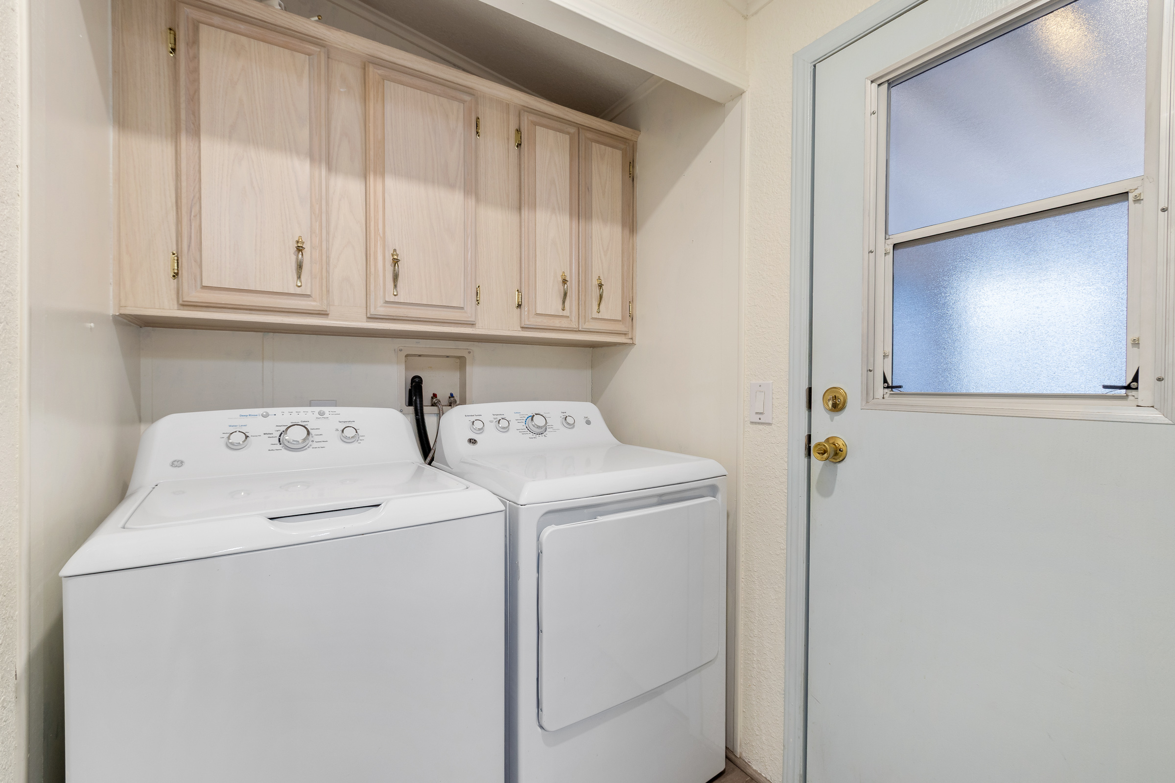 This cozy home has everything you need! New Frigidaire slide in stove/oven. Split floorplan with bedrooms and bathrooms at each end of the home offer privacy for your guests. A nice open floorplan allows you to entertain easily. Side by side parking and an extra large storage shed compliment this home, along with front and back patios for rest and relaxation. Washer and dryer conveniently located just off the kitchen. A little TLC and this will be a really comfortable winter retreat home or perfect for enjoying Arizona year-round!