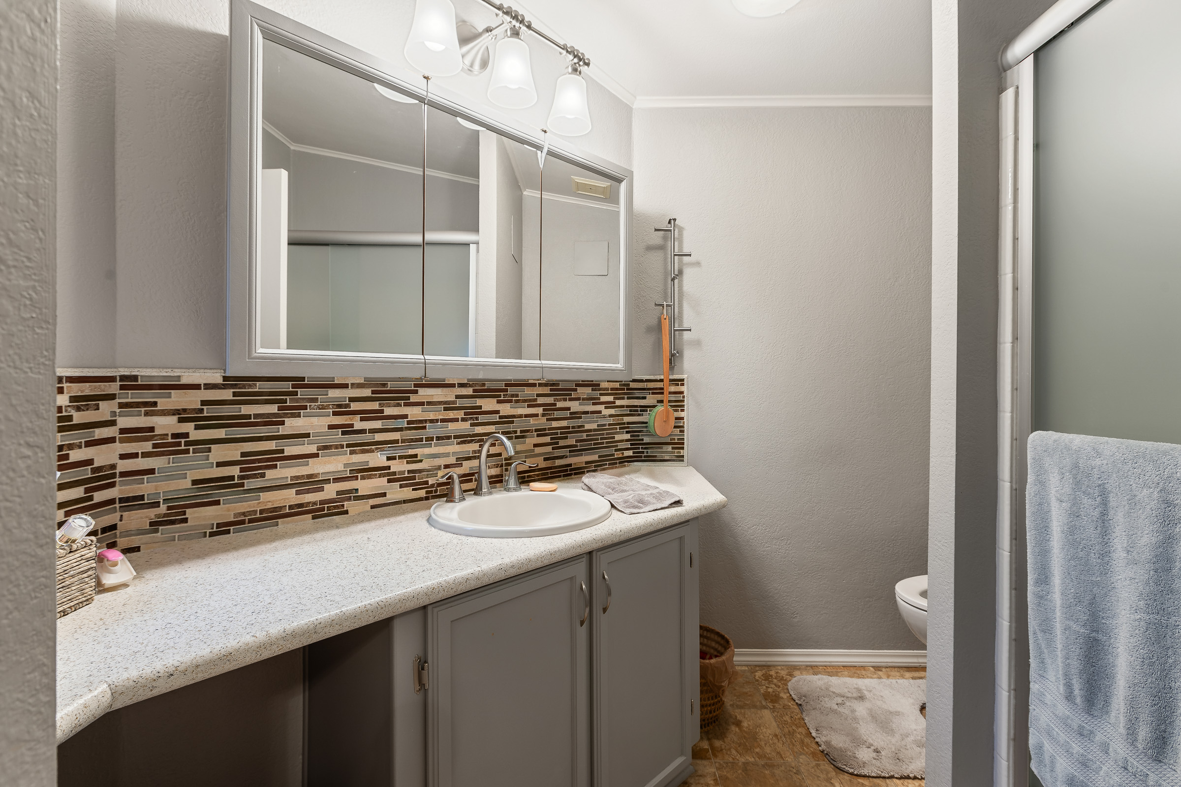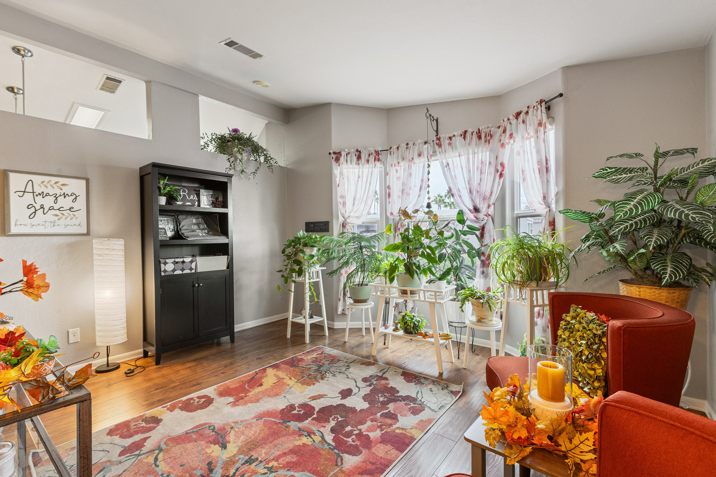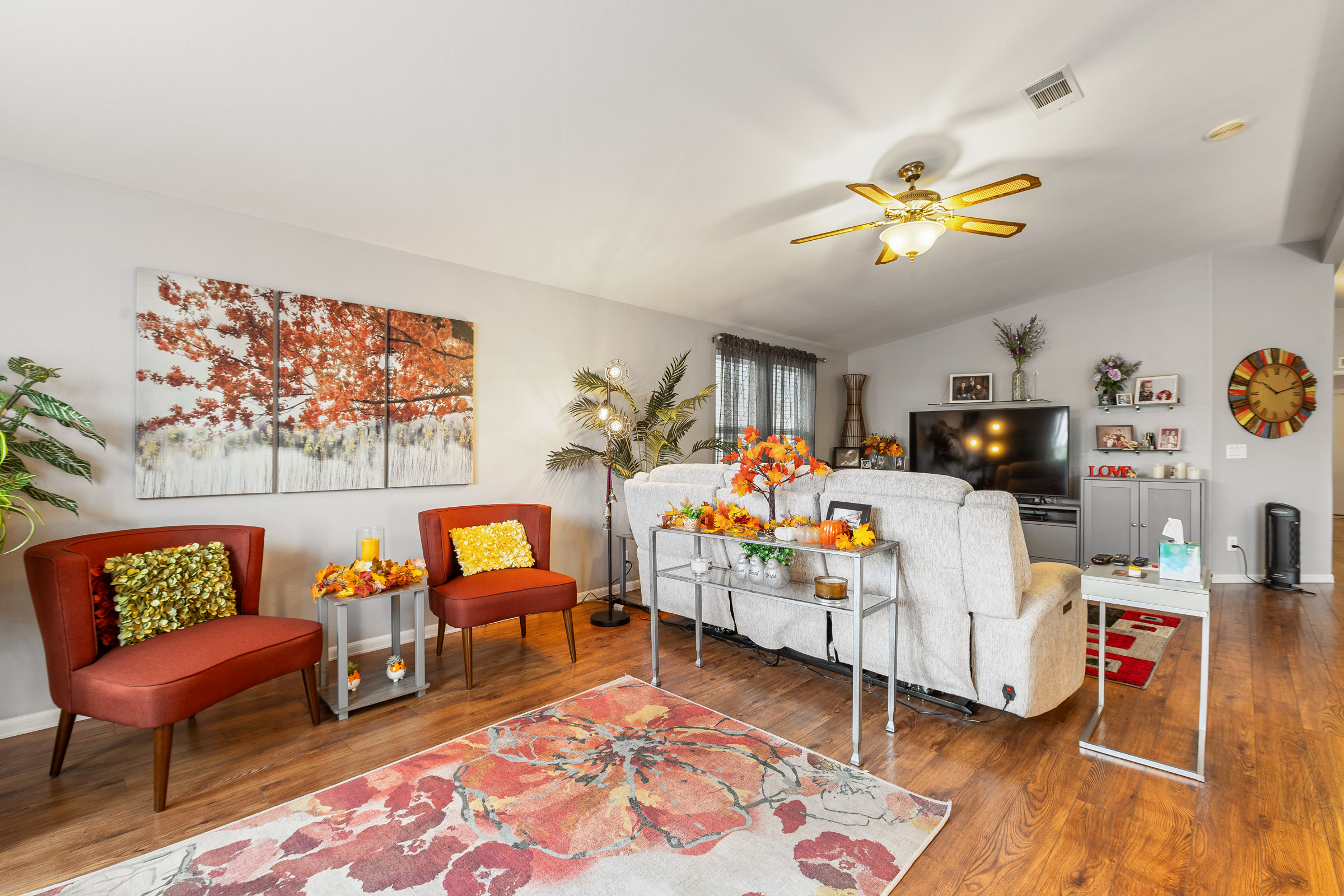This home has everything you want…Open Floor Plan, with 1456sf, lots of space and large bedrooms. New Windows, New Roof, New Water Heater, and Fully Furnished! Vinyl Plank Flooring. Ikea cabinets in laundry room for extra storage. New Stainless appliances. Extra refrigerator in laundry room. Step-in shower in master bathroom. The AZ Room is screened in for relaxing and enjoying our beautiful weather. Motion lights in front and backyard. Custom made steel security doors on front and back. The side-by-side carport is a real bonus feature! Peaceful, private backyard on perimeter wall. This is a very clean home with upgrades and furnishings for you to start enjoying the Palmas Del Sol East lifestyle!