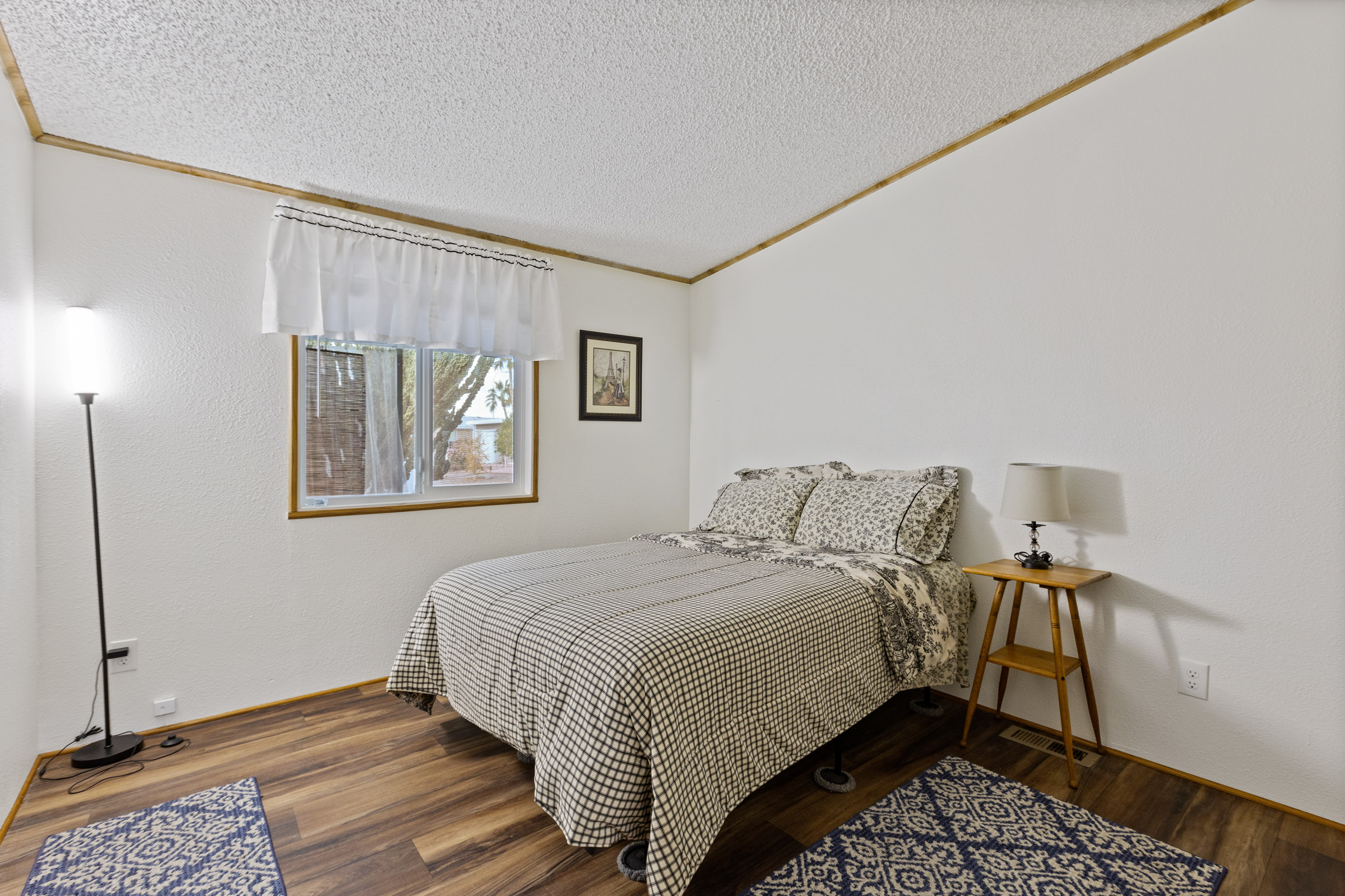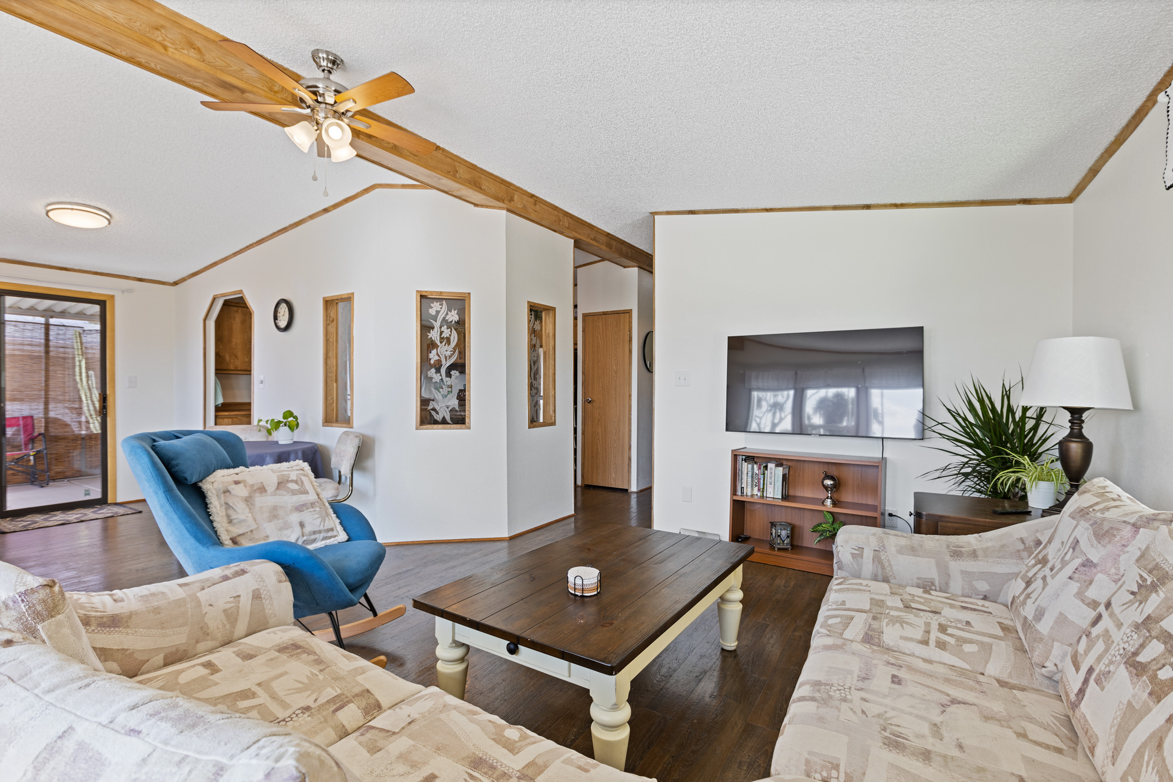 What a view! Enjoy a full view of the lagoon and water fountains, along with a beautifully maintained grassy area. Laminate flooring throughout. Stainless kitchen appliances. This bright and airy home features abundant natural light and a screened porch perfect for relaxing. The home is partially furnished, including a large TV in the family room. All appliances are offered with the home. A dedicated laundry room includes a washer and dryer for convenience. Located in a perfect spot directly across from the clubhouse, pool and sport courts. Newer AC Unit. Spacious backyard.