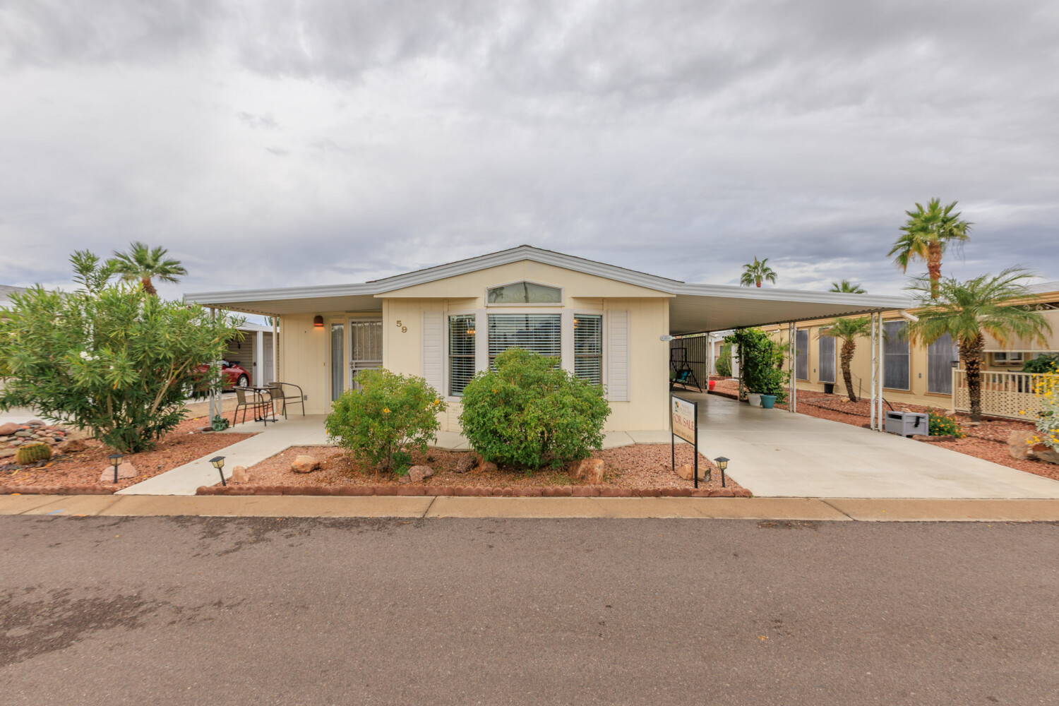 Wonderful mountain views and natural sunlight make this a cheery home. The additional 780 sf. enclosed AZ Room provides additional living space and has HVAC for air conditioning and heat. There is a separate room at the end of the AZ Room that can be used as another bedroom or craft room. The super huge storage shed is fabulous and could work really well for a workshop or make it any space you might need. NEW ROOF, NEW WATER HEATER, NEW AC UNIT, NEW FLOORING!!! Make this your Arizona dream home today!!!